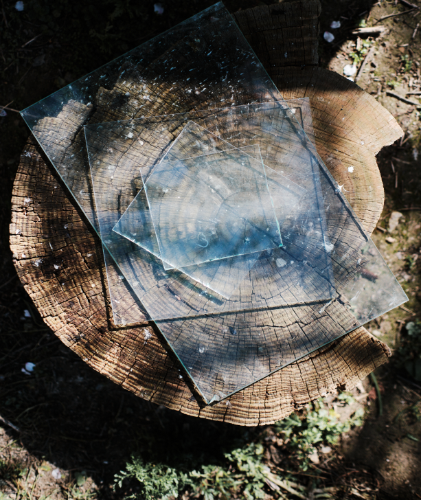 Al abrazarse a sí mismo, el vidrio origina sutiles sensaciones envolventes que remiten a la lentitud de las formaciones geológicas.