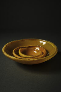 Realizados en vidrio flotado con esmalte ocre encapsulado.