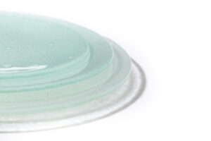 Realizada en vidrio flotado con esmalte encapsulado aguamarina